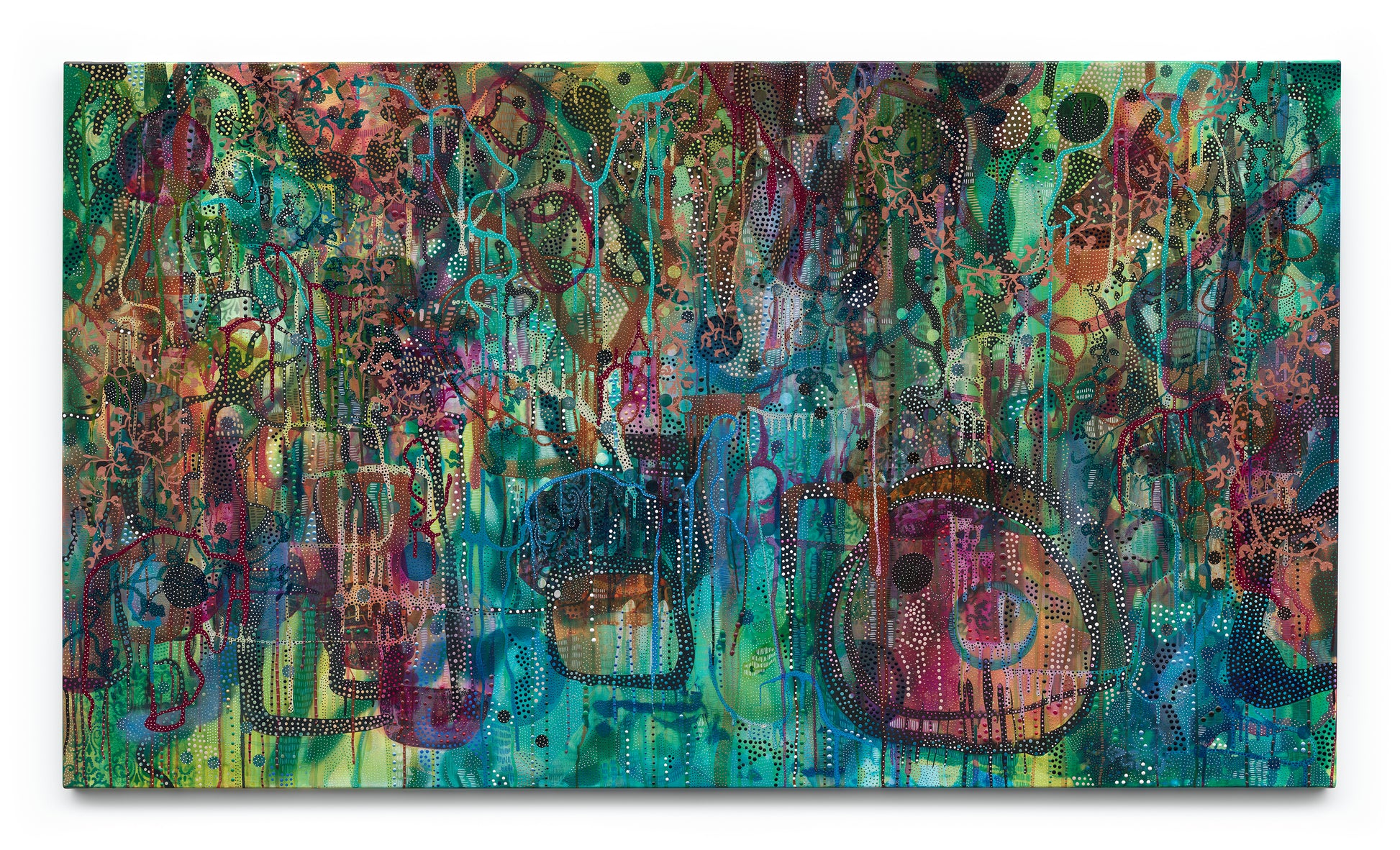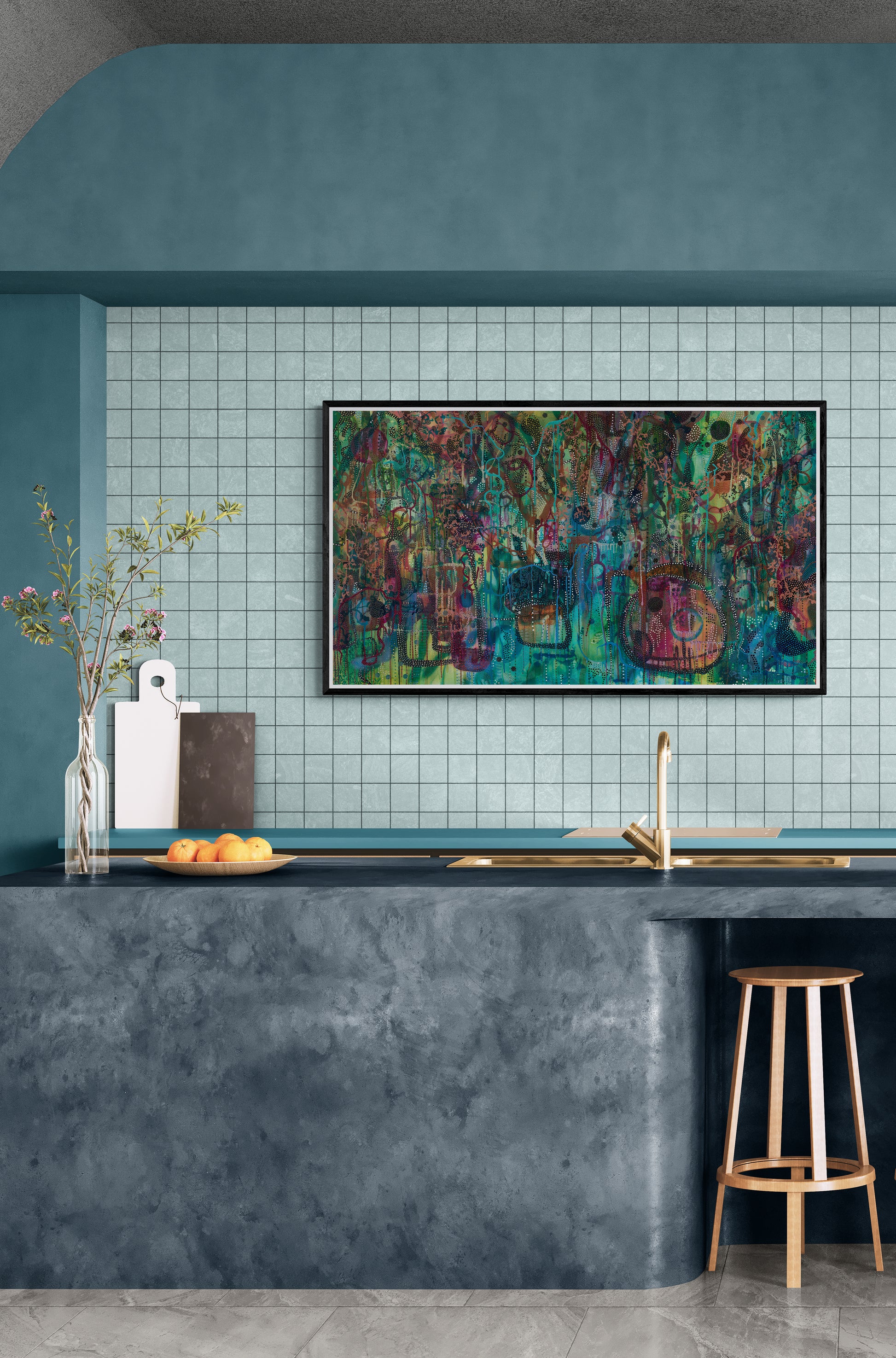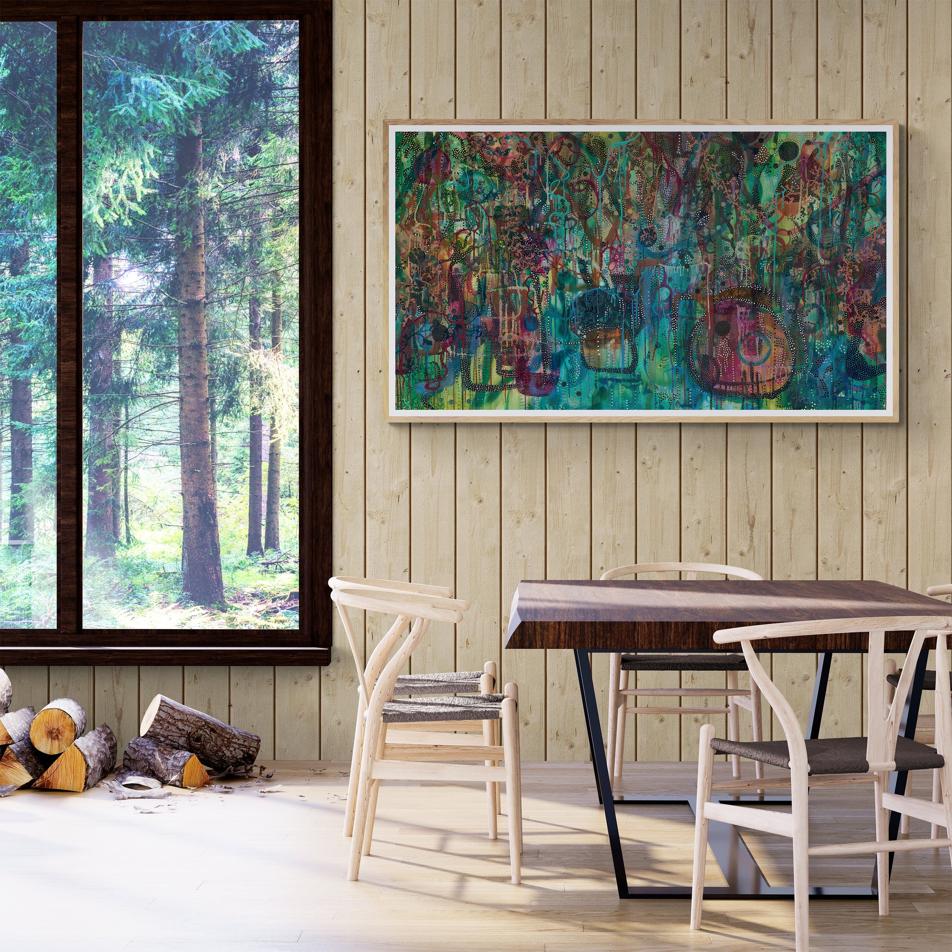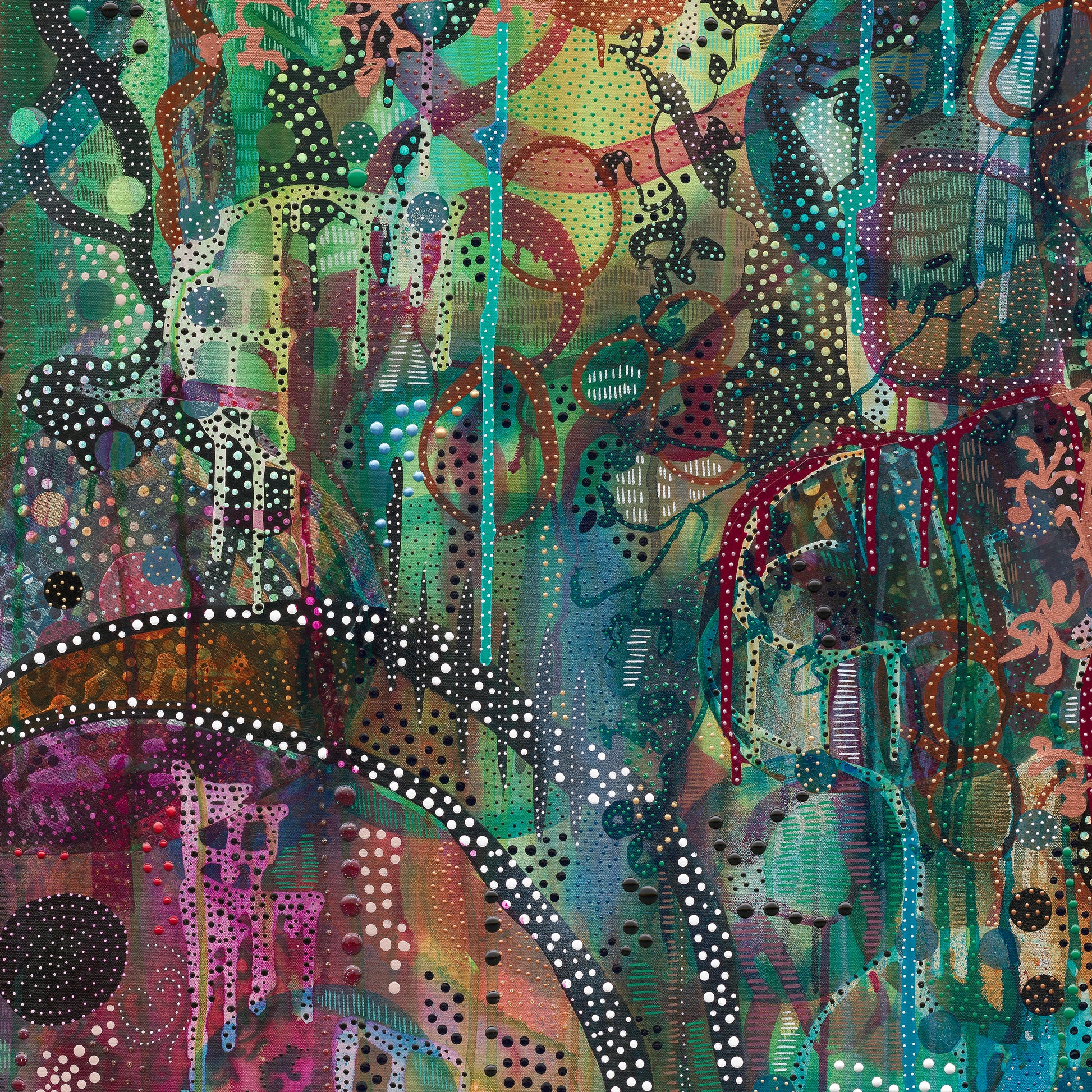 "Where We Meet" is a map of shared wonder—a painted journey through the places my children and I have explored together. It captures the moments where imagination and reality blend: secret tracks, tangled branches, sun-dappled water, and quiet spaces full of laughter and questions.