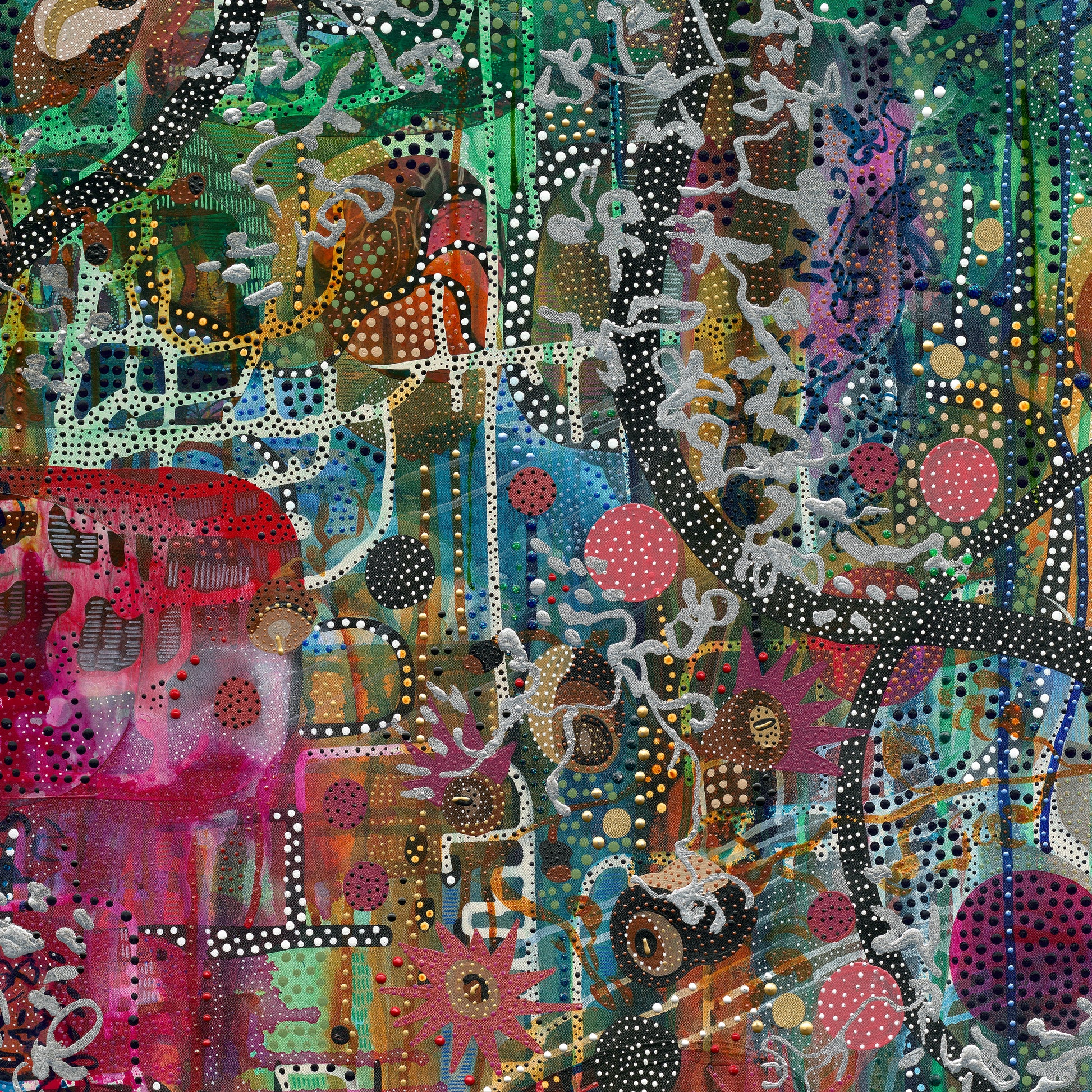“Hold My Hand Under the Stars” is a magical walk through the bush, where the trees glow softly and the stars peek through the leaves like tiny lanterns. It tells the story of a quiet adventure—me and my child, hand in hand, stepping gently over roots and under tangled branches. The night hums with whispers of crickets and dreams, and the path sparkles with memories. Every dot and swirl is a moment we shared, wrapped in starlight and love.